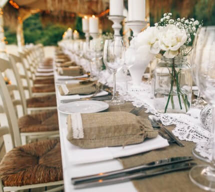 Transform any outdoor space into a magnificent venue for your event with our stunning decorations and delectable cuisine.